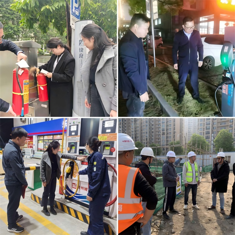 本次專項排查緊扣“設備運行、油電安全、應急保障”三個維度,檢查范圍覆蓋全市三縣兩區共130個充電站點,并延伸至平安綜合能源站、安山綜合能源站、在建安和綜合能源站及多個新能源充電設施建設項目現場。檢查人員分為5個小組,重點對充電樁漏電保護、急停功能,以及綜合能源站加油加氣設備、儲罐區、卸油作業區安全管理和在建項目施工現場防護、臨時用電、消防設施等進行全面排查,確保各類設備設施運行狀態良好、安全措施落實到位。